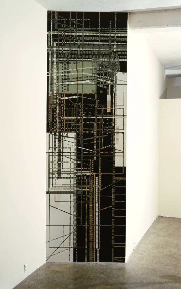 Finale Dimensions Variable, Black and white Acrylic on Tyvek on Wall, 2004